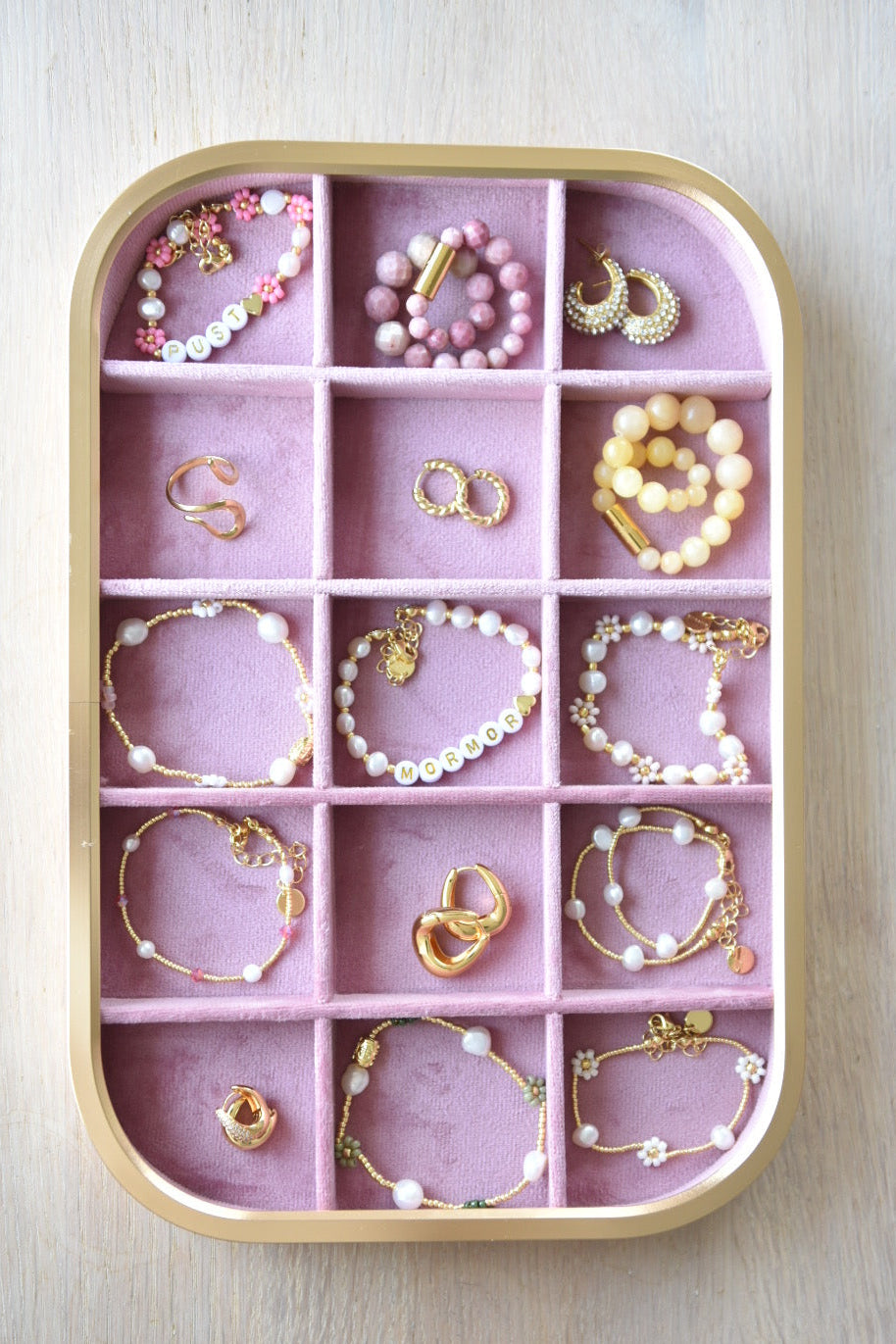 Vi anbefaler på det sterkeste å unngå at lotion, hårspray og andre kosmetiske produkter kommer i kontakt med smykkene dine. Unngå også å bruke smykkene mens du sover eller driver med sport. For å bevare smykkene dine, er det viktig å unngå kontakt med vann, saltvann, klor og andre kjemikalier. Oppbevar smykkene i et tørt rom, helst i et smykkeskrin, og aldri på badet. Vær oppmerksom på at plettering kan slites av over tid, noe som er helt normalt og ikke en grunn til krav.